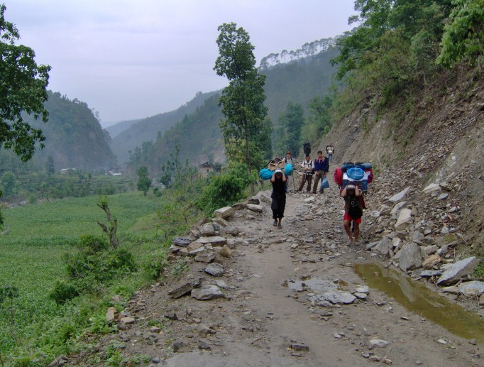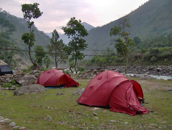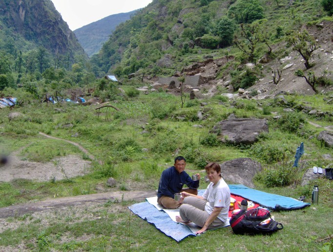 By bus to Jiri in about 8 hours. Just outside Jiri, we set up camp for the first night.