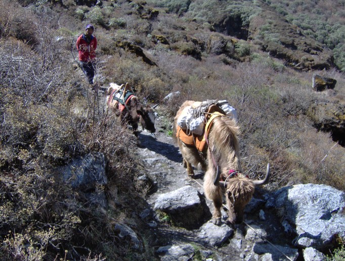 The day begins with a fairly long climb to the Baramji La (3500m), through rhododendron forests interspersed with beautiful vistas. Overall, we climb to Yale, a Kharka (= open area or pasture).
