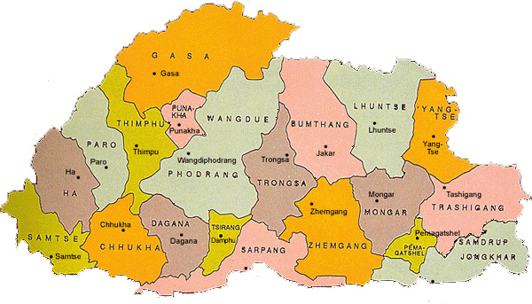 Located in South Asia, Bhutan is a landlocked country. Spanning an area of around 46,500 square kilometers and has population of 650,000 with seventy five percent of the population living on cultivation and livestock rearing. It stretches 300 km from East to West, while the North-South axis is around 140 km. On its boundaries to the East, West and south lie the Indian states of Arunachal Pradesh, Sikkim and West Bengal/Assam respectively while to the north lies Tibet's Chumbi valley,sandwiched between North Bhutan and Sikkim.There is no definitive version of how the country got its name-the most common interpretation is that it is derived from Bhot-stan, the land of the Bhotias(in the ancient Indian language Sanskrit,people orginally from Tibet were called 'bhotia').This was later corrupted by the early British explorers to Bootan or Bhotan.Another theory suggests that the name evolved from Bhotanta(end of Tibet) or from Bhu-uttan meaning "highland". In the Dzongkha language Bhutanese refer to their country as Druk Yul(Land of Thunder Dragon)and themselves as Drukpas.
