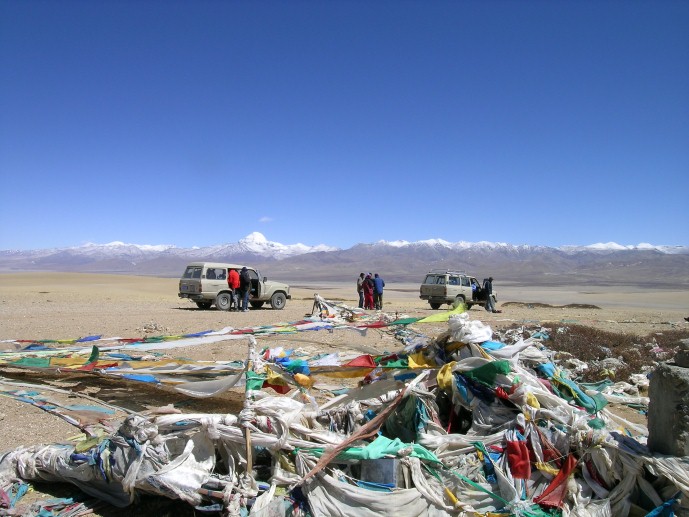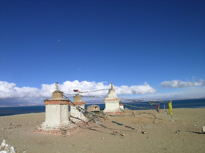 Traditional Buddhist cosmology has often connected Kailash with Mount Meru, the great mythological mountain that forms the axis of this world system. Because of its religious associations, many Hindu and Buddhist ascetics, hermits and pilgrims have been drawn to the area of the mountain for the past two thousand years or so to see it and to offer their prayers, absolve sins, circumambulate it and to practice austerities and meditation. Immediately South of Mount Kailash, across the base of the majestic Mount Gurla Mandhata, are the two lakes famously known as Mansarovar and Rakkshas Tal (lake). They are the highest bodies of fresh water in the world, with Manasarovar (330 sq. km), at 4,558 meters, about fifteen meters higher than Rakshas Tal. Of the two, Manasarovar is considered by both the Buddhist and Hindus to be more worthy of veneration. Buddhists believe that Queen Maya, the Buddha's mother was carried here by the gods and washed prior to giving birth to the Buddha.