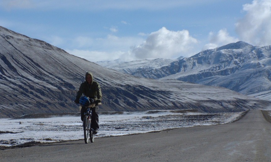 Day 2: Bike over Kudi La pass to near small salty water channel Camp.